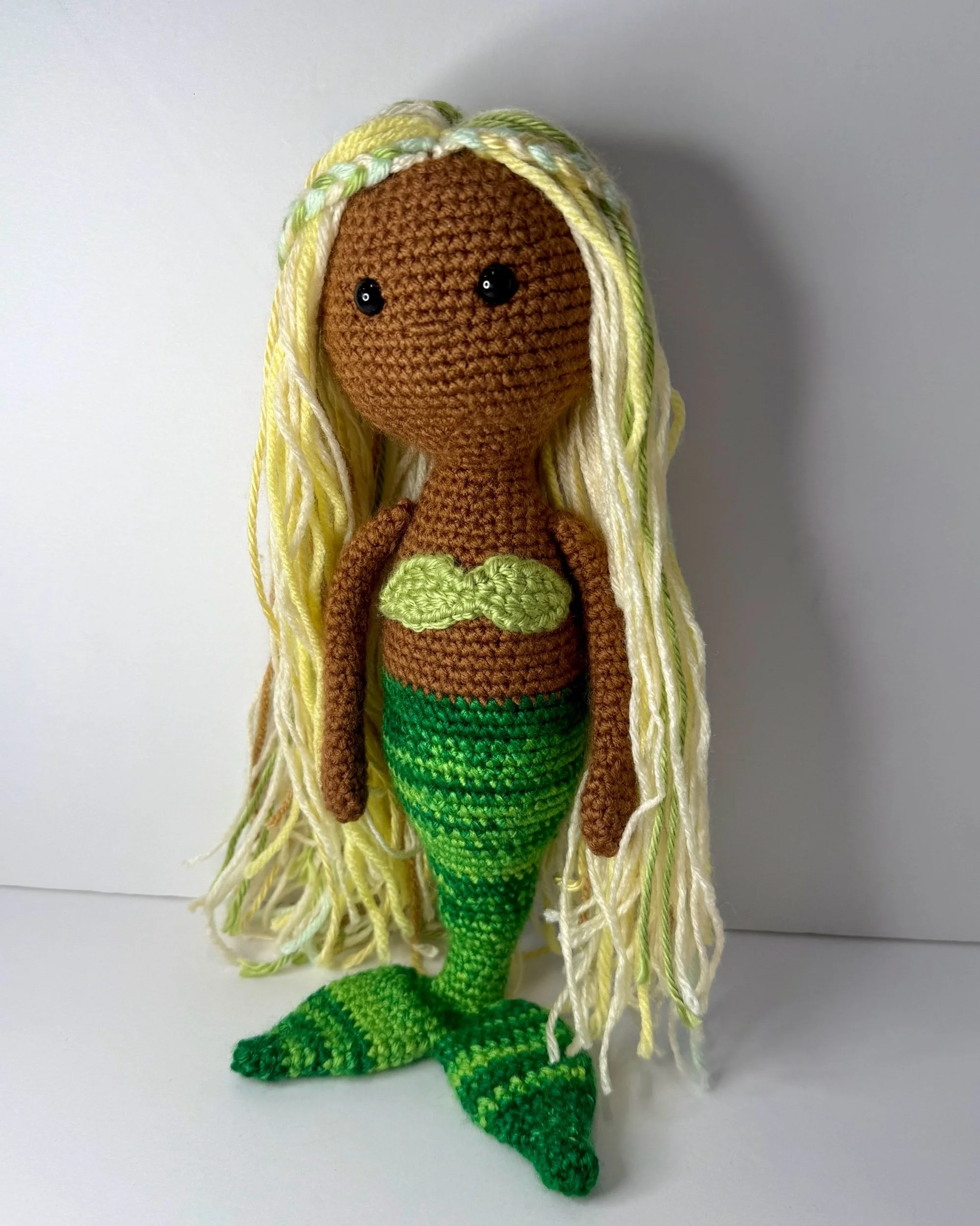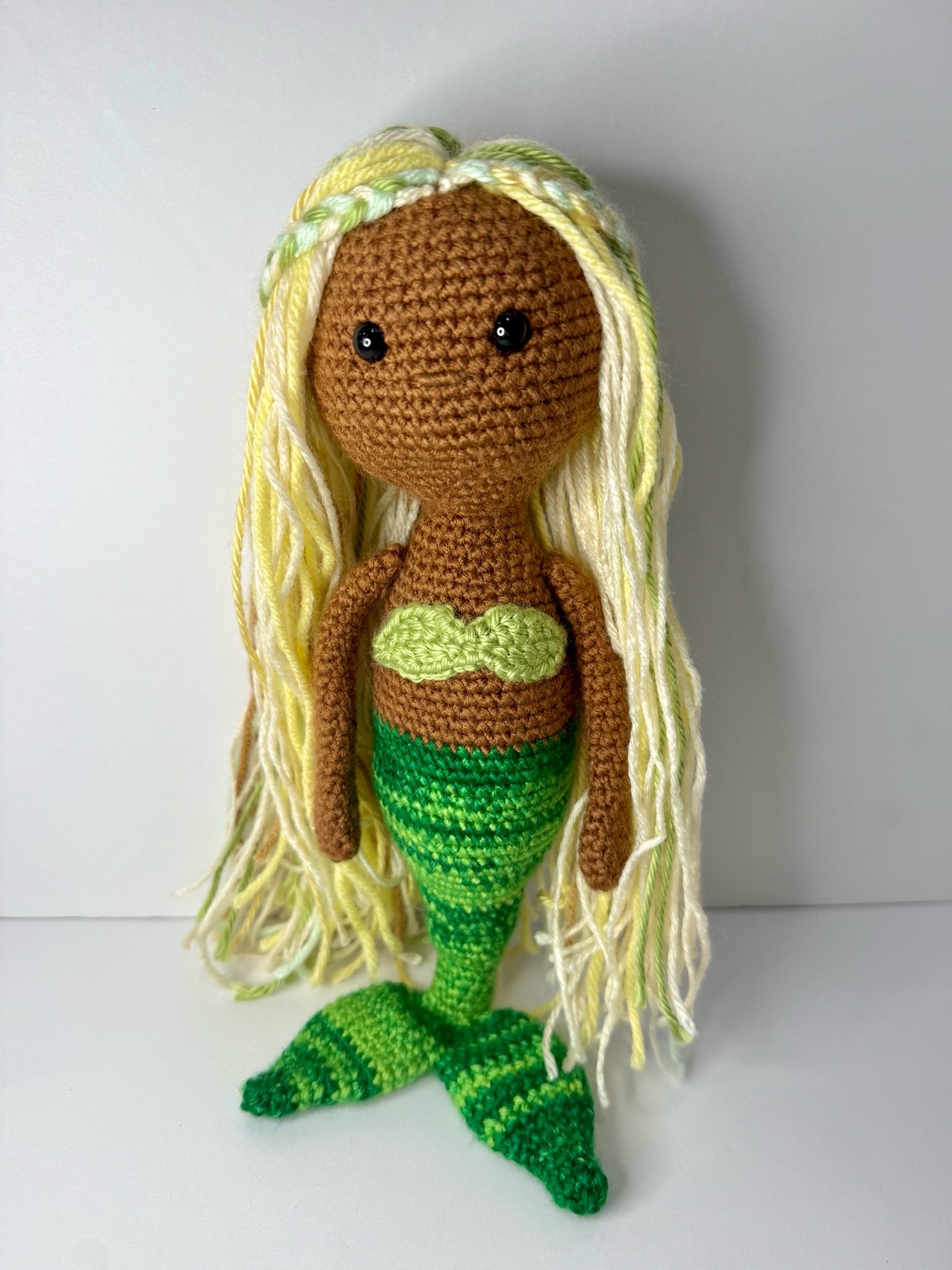 handmade mermaid ideal for an ocean themed nursery or as a companion for summer vacation.